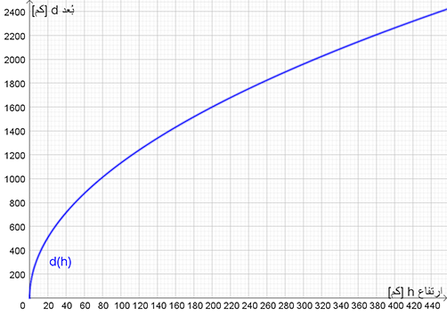 معطى خط بياني للدالة \(d(h)\ التي تصف بُعد المُشاهد \(d\) (بالكم) عن خط الأفق,